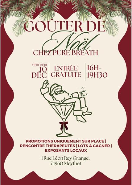 Tous à vos agendas, vous êtes invités le MERCREDI 10 DECEMBRE pour un GOUTER - APERO UNIQUE ! Poussez la porte de notre centre et découvrez l’univers magique de Pure Breath. Nous vous réservons de belles surprises durant cette soirée… 🤫